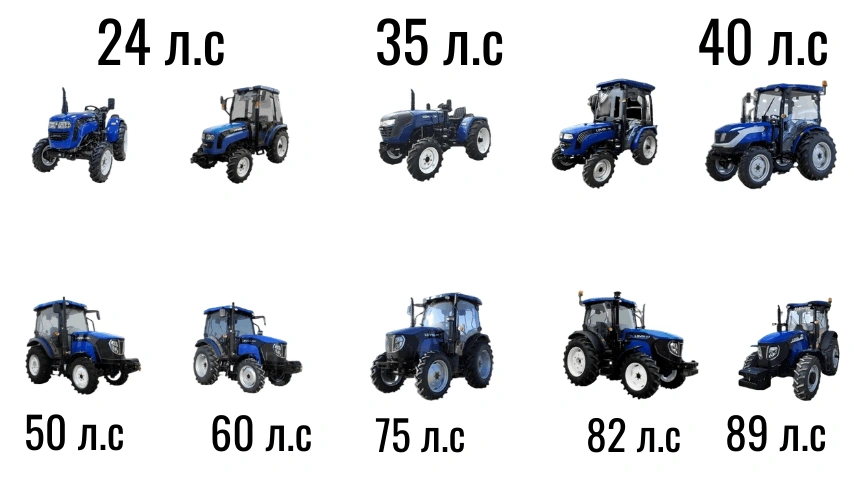 Такой подход позволяет покупателю ориентироваться не на абстрактную мощность, а на реальную способность трактора выполнять конкретные задачи — от ухода за небольшим приусадебным участком до работы с тяжёлыми навесными орудиями и прицепами.