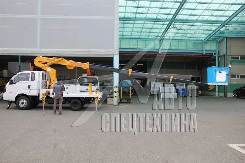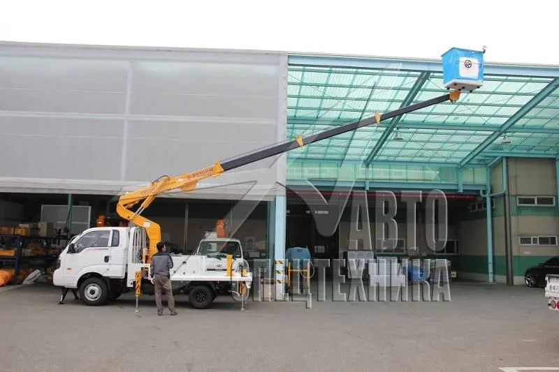 Автовышка Donghae DHS15AP корейского производителя Donghae Machinery подходит для работ в сферах городского и коммунального хозяйства в Екатеринбурге: выполнение электромонтажных работ, монтаж рекламных щитов и конструкций, ремонт кабельных линий. Также может использоваться в строительных работах. Она состоит из бортовой платформы и крановой установки с рабочей высотой стрелы 14,5 м.